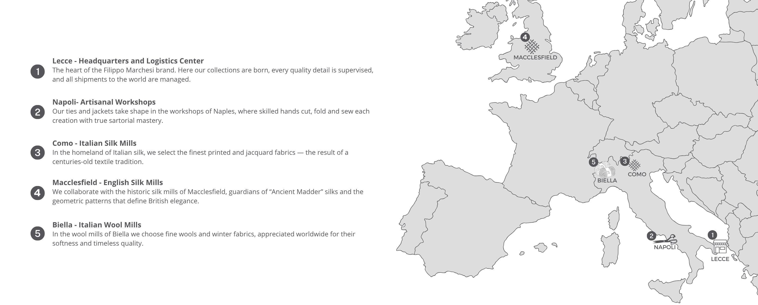 Italian sartorial art is the heart of every Filippo Marchesi creation. Our ties, pocket squares, shirts, our creations are born from the expert hands of master artisans who preserve techniques passed down through generations, combined with a constant pursuit of perfection.